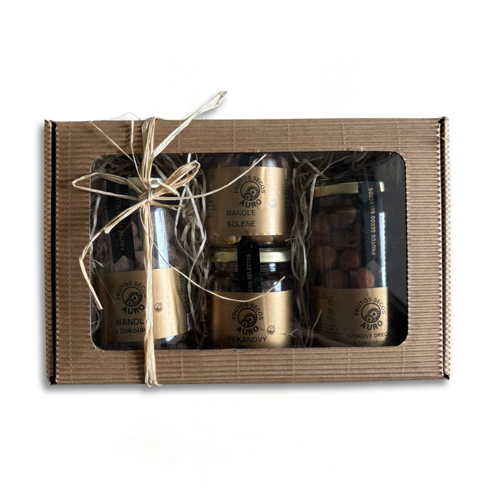 Stylově zabalený dárkový balíček, který potěší každého milovníka ořechů. 💝